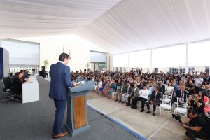 Acompañado en el presídium por la síndica, así como de las regidoras y regidores electos que integran el Ayuntamiento 2024-2027, el Presidente Municipal ofreció construir juntos la ciudad que soñamos y se comprometió a «seguir trabajando con amor y compromiso para que la capital brille y siga teniendo la luz que guía todo el estado».