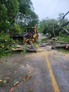 En los municipios de Arteaga y Tumbiscatío la tormenta tropical John ha generado la caída de árboles y derrumbes en carreteras, sin que por fortuna haya víctimas que lamentar, a decir de las autoridades de Protección Civil.