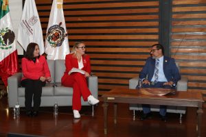 Flanqueado por la rectora, Yarabí Ávila González, el funcionario municipal dictó la conferencia magistral “Pensar la seguridad fuera de la caja”, dirigida a estudiantes de la Licenciatura de Seguridad Pública y Ciencias Forenses.