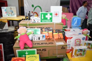 Para el área de educación inicial se entregaron kits de estimulación, cubo didáctico, tapetes sensoriales, sonajas, set de pelotas sensoriales, muñecos de apapacho, carritos montables, blocks de juego, pizarrón, rompecabezas, entre otros juegos y artículos.