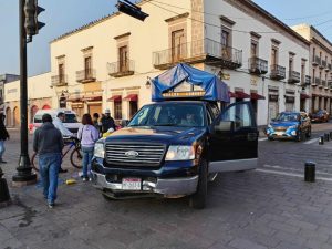 Morelia, Mich.- Lunes 14 de octubre de 2024.- El conductor de una camioneta, aparentemente bajo los efectos de bebidas embriagantes, se impactó contra un triciclo de tamales en el Centro Histórico de Morelia, informaron fuentes allegadas al tema, las cuales agregaron que por fortuna no hubo lesionados.