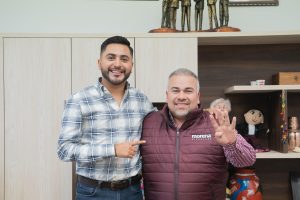 El coordinador de alcaldes de Morena en Michoacán, Pedro Alexis Velázquez Guzmán sostuvo una reunión de trabajo con el recién nombrado dirigente estatal de este partido, Jesús Mora.