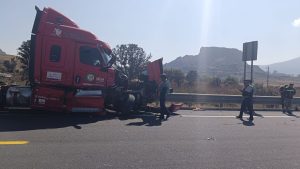 Mientras que en la autopista Pátzcuaro – Copándaro, un trailer choco contra la barrera metálica de contención, en las inmediaciones del kilómetro 31+500, siendo valorado su conductor por socorristas, sin que requiera traslado a un hospital.