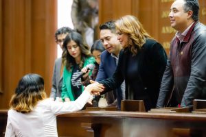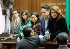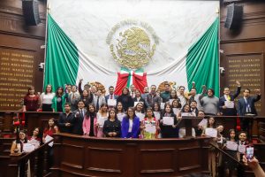 Acompañados por el presidente Municipal de Huandacareo, Pedro Velázquez Guzmán, las y los jóvenes organizadores agradecieron el apoyo y las facilidades que la legisladora les brindó para la realización de esta actividad en el Palacio Legislativo.