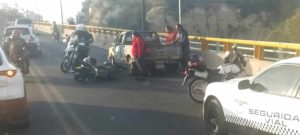Morelia, Mich.- Jueves 02 de enero de 2025.- Una joven motociclista resultó lesionada tras chocar contra una camioneta que estaba descompuesta sobre el puente Guadalupe Victoria-Torreón Nuevo, al norte de Morelia, comentaron autoridades policiales.