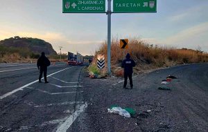 Taretan, Mich.- 10 de enero de 2024.- La mañana de este vienes, fue localizado el cadáver de un hombre desconocido, sobre la autopista Siglo XXI, a unos metros de la caseta de cobro de Taretan. Se presume que el susodicho fue atropellado.