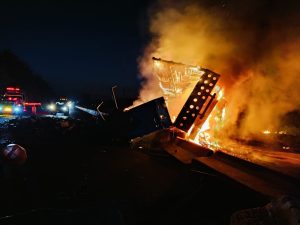 Múgica, Mich.- 11 de marzo de 2025.- La mañana de este martes, un camión cargado con limón volcó sobre la carretera Apatzingán – Cuatro Caminos y ardió en llamas, sin que hasta el momento se tenga reporte de víctimas, sin embargo, la vialidad fue cerrada a la circulación.