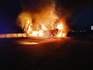 Hasta el momento continúan las labores de auxilio en la zona, siendo cerrada la circulación para sofocar el fuego, retirar la unidad quemada y realizar limpieza de la carpeta asfáltica.