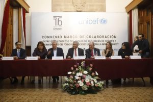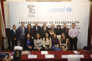 El Representante de la UNICEF en México, Luis Fernando Carrera Castro recordó que la firma, es una renovación del convenio signado con la anterior Legislatura por lo que continuarán trabajando en conjunto con los diputados locales a fin de revisar la legislación, así como para empezar a analizar los delitos que aún no se contemplan como el reclutamiento de menores para actividades criminales, así como explotación y abuso sexual.