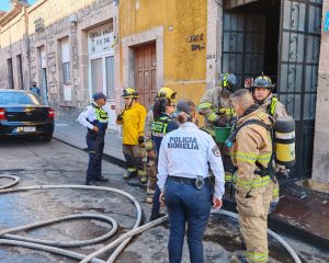 Morelia, Mich.- Viernes 28 de marzo de 2025.- La mañana de este viernes se registró un incendio en una papelería ubicada en el Centro Histórico de Morelia. Por fortuna no hubo personas lesionadas, comentaron autoridades policiales y de rescate.