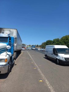 El primer incidente ocurrió sobre una brecha localizada a un costado de la carretera Pátzcuaro-Morelia, a la altura de la región de Lagunillas, cerca de la desviación a El Correo. En el sitio, una combi que transportaba cortadores de fresa ardió en llamas tras una falla mecánica; la unidad terminó calcinada y sus pasajeros resutaron ilesos.