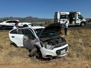 También sobre la Morelia-Pátzcuaro, pero a la altura de Uruapilla, un automóvil blanco, al parecer Chevrolet Aveo, se salió intempestivamente de la carpeta asfáltica, las bolsas de aire se activaron y sus tres ocupantes resultaron lastimadas. Unos paramédicos del Centro Regulador de Urgencias Médicas (CRUM) acudieron al sitio en mención y otorgaron ayuda a las afectadas.