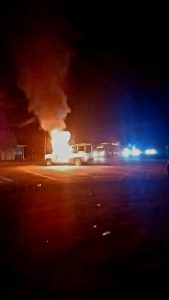 Paracho, Mich.- 14 de abril de 2025.- La noche de este lunes, un grupo de presuntos comuneros se apoderaron de una patrulla y le prendieron fuego sobre el libramiento que comunica de la comunidad indígena de Aranza a la población de Cheranástico.