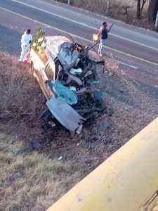 Pátzcuaro, Mich.- Lunes 21 de abril de 2025.- Un hombre falleció tras el choque de una camioneta contra un árbol ubicado en la cuneta central de la carretera Morelia-Pátzcuaro, trascendido en el trabajo periodístico.