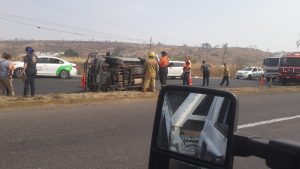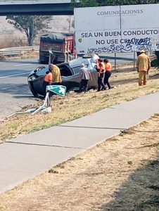 En esa misma rúa, pero metros adelante, frente al fraccionamiento San Bernabé de La Cantera, también un vehículo volcó; por fortuna no hubo lesionados.