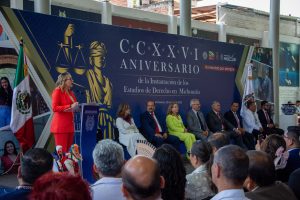 Por su parte, la rectora Yarabí Ávila González, indicó que la Facultad de Derecho y Ciencias Sociales es una de las dependencias más antiguas de la UMSNH, al tiempo que se pronunció por enrumbar acciones para que se mantenga el pedestal de prestigio y reconocimiento social de la dependencia y por otro lado despuntar mejores horizontes a fin de que se constituya como la mejor Facultad de Derecho del país.