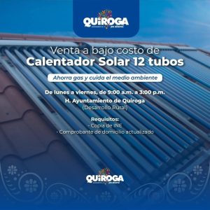 *Impulsa Quiroga el uso de energías limpias con venta de calentadores solares a bajo costo*