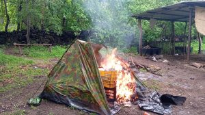 De igual se informó que en otra acción operativa, los soldados en coordinación con autoridades locales en Jocotitlán de los Dolores, ya en territorio jalisciense detectaron en una zona serrana un campamento clandestino, el cual era utilizado por una célula delictiva, donde se encontraron 2 hieleras, plásticos, garrafones de agua, cobijas y restos de comida, todo ello fue destruido por método de incineración.