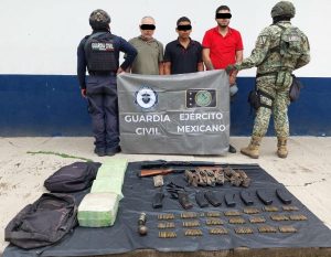 Buenavista, Mich.- 1 de julio del 2025, Oficiales de la Secretaría de la Defensa Nacional (Defensa) y de Seguridad Pública del Estado detuvieron a 3 presuntos integrantes del Cartel Jalisco Nueva Generación en posesión de diversas armas de fuego, cartuchos, cargadores, granadas y equipo táctico. En otra acción operativa fue localizado y desmantelado un narcocampamento.