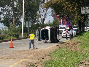Morelia, Mich.- Jueves 03 de julio de 2025.- Una lujosa camioneta volcó sobre el Boulevard Alfredo Zalce, en la zona de Tres Marías, municipio de Morelia, incidente que únicamente dejó daños materiales, comentaron fuentes policiales y de rescate.