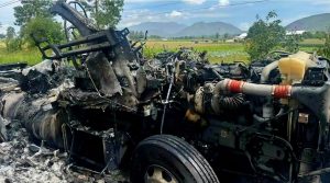 La situación fue reportada al número de emergencias, después acudieron policías y bomberos, quienes sofocaron la lumbre, sin embargo la unidad terminó totalmente calcinada. Al final, una grúa retiró los restos del tractocamión.