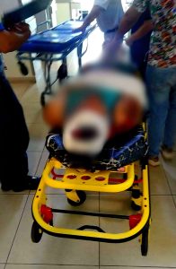 Paramédicos de Protección Civil Municipal acudieron al sitio del incidente y trasladaron al herido al Hospital General de Apatzingán. El paciente presentaba una herida abierta en la cabeza y una probable fractura en la clavícula derecha, por lo que fue ingresado de inmediato al área de urgencias.