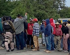 Al intentar liberar el bloqueo de una carretera federal, la autoridad local con los denominados Kuaris, que es la policía comunal, sostuvieron una trifulca con varios manifestantes, tres personas fueron golpeadas y detenidas.