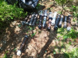 Más adelante, en el tramo de terracería que conecta las localidades de Loma de los Hoyos y El Alcalde, también en Apatzingán, se descubrieron otros 15 artefactos explosivos de las mismas características.