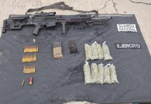 Al interceptarlo y realizar una revisión minuciosa, los uniformados hallaron un arma de fuego de manufactura atípica, un cargador abastecido con 30 cartuchos útiles y nueve bolsas con hierba verde seca que, por sus características, se presume es marihuana.