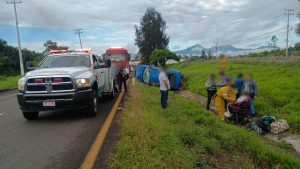 Morelia, Mich.- Miércoles 16 de julio de 2025.- Una volcadura vehicular se registró la mañana de este miércoles sobre la carretera Morelia-Pátzcuaro, la cual dejó cuatro mujeres lastimadas, indicaron fuentes policiales y de rescate.