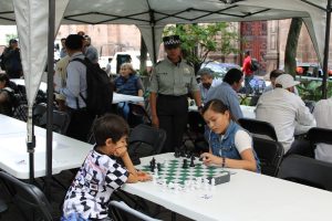 Entre partida y partida de ajedrez rápido, los asistentes descubrieron que el uniforme no siempre impone, que puede tender puentes si se acompaña de voluntad.