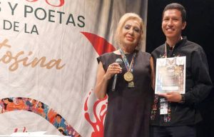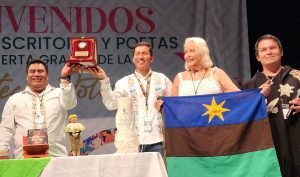 Jesús Molina recibió el premio mundial “Águila de Oro”, por su labor cultural y literaria, así como el galardón institucional de la corporación internacional de la identidad de los pueblos y la paz; en representación de Gerark Tekam Velásquez (Chile), la entregó Ana María Unhold (Argentina).