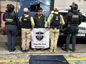Quiroga, Mich.- 30 de julio de 2025.- Producto de las tareas de vigilancia establecidas en el municipio de Quiroga, los agentes de la Secretaría de Seguridad Pública (SSP), y Kuarichas, detuvieron a un hombre en portación de un arma de fuego.