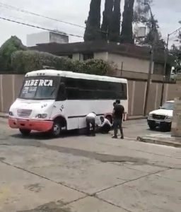 Morelia, Mich.- 07 de agosto de 2025.- A un viejo camión de pasajeros, de la Ruta Alberca ,número económico A-67, se le desprendió el tanque de gas cuando avanzaba sobre la calle Ana María Gallaga, a la altura de la colonia Cuauhtémoc, frente al bar Tarritoz, trascendió en redes sociales.
