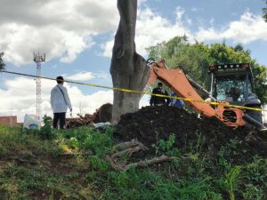 Morelia, Mich.- Lunes 25 de agosto de 2025.- Parte de un cráneo humano fue encontrado por trabajadores del Organismo Operador de Agua Potable, Alcantarillado y Saneamiento de Morelia (Ooapas), esto cuando realizaban una excavación propias de su labor a la orilla del Río Chiquito y de la avenida Solidaridad.