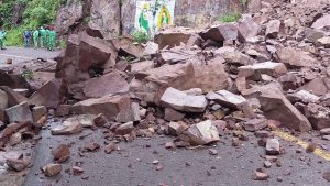 En el sitio se encuentra ya personal trabajando para retirar las piedras y lodo que se desprendieron de un paredón, por lo que se espera que ennlas próximas horas se restablezca el tránsito vehículo.