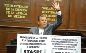 Barragán recordó el respaldo al Sindicato de Trabajadores al Servicio del Poder Ejecutivo (STASPE), cuyas trabajadoras y trabajadores enfrentaron intentos de eliminar el cobro en efectivo en cajas del gobierno, bajo el argumento de combatir la corrupción.