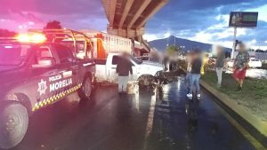 Camioneta choca contra poste del alumbrado público en el Libramiento Norte de Morelia