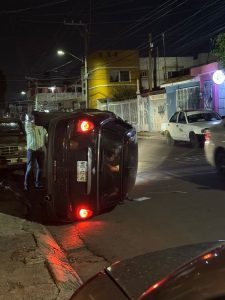 Morelia, Mich.- 20 de septiembre de 2025.- La noche de este sábado, un auto particular se salió de control y terminó volcado en la avenida Fuentes de Morelia, al sur de la ciudad de Morelia. Bomberos Voluntarios de Michoacán IAP atendieron de forma oportuna el accidente.