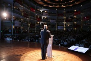 Zamora, Michoacán, 26 de septiembre de 2025.- El gobernador Alfredo Ramírez Bedolla presentó su informe regional en el municipio de Zamora, donde anunció la modernización de tres kilómetros del tramo El Sauz-La Rinconada, que contempla un distribuidor vial en la entrada de la ciudad.