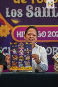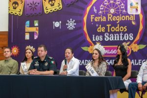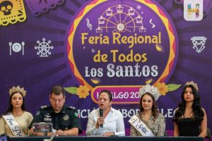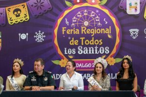 Ciudad Hidalgo, Michoacán., a 26 de septiembre de 2025.- La Presidenta Municipal de Hidalgo, Jeovana Alcántar, acompañada de Regidores y Funcionarios Municipales, en rueda de prensa ante medios de comunicación locales y regionales, dio a conocer las diversas actividades, artísticas, culturales y gastronómicas en el Marco de la Tradicional Feria Regional de Todos los Santos 2025 “Tradición Sabor y Alegría” que se efectuará del 24 de octubre al 09 de noviembre del año en curso en los campos deportivos de Tierras Coloradas, donde además de los juegos mecánicos, se podrá disfrutar de la muestra gastronómica, Mueblera, artesanal y una gran cartelera de artistas de talla nacional e internacional.
