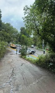 La situación fue reportada al número de emergencias. Después acudieron patrulleros municipales, quienes solicitaron el apoyo de una grúa cuyos operadores engancharon el vehículo con un cable de acero y lo regresaron al camino para posteriormente retirarlo.