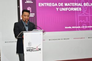 Morelia, Michoacán, 25 de octubre de 2025.- El Secretariado Ejecutivo del Sistema Estatal de Seguridad Pública (SESESP) entregó 251 armas de fuego, más de 55 mil cartuchos y 748 uniformes tácticos a siete municipios, tres comunidades indígenas con autogobierno y a agentes de la Guardia Civil, con el objetivo de fortalecer las capacidades operativas y la seguridad de las corporaciones policiales en Michoacán.