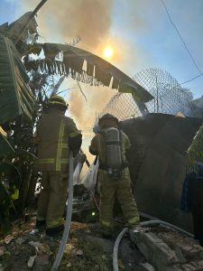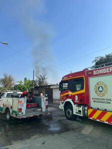 Morelia, Mich.- Lunes 27 de octubre de 2025.- Una choza de madera ardió en llamas durante la mañana de este lunes en la colonia Jacarandas, ubicada en Morelia, emergencia que fue atendida por bomberos estatales.