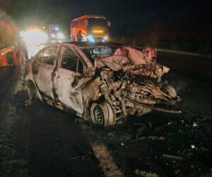 El hecho fue a la altura del kilómetro 107+600 del tramo Uruapan-Nueva Italia, cuando un vehículo Nissan Versa blanco, con placas PKA-605-E, se impactó por alcance contra un tráiler que posteriormente se dio a la fuga. Tras el choque, el automóvil se incendió, quedando completamente calcinado.