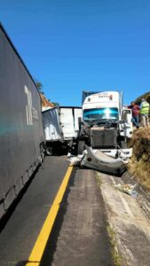 Se presume que en el incidente participaron al menos siete vehículos de carga, incluidos algunos tractocamiones. El percance ocasionó afectaciones materiales y problemas de tránsito.