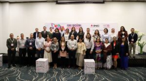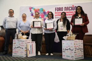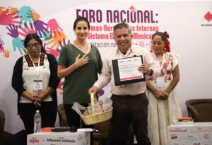Posteriormente se desarrolló el conversatorio “Capacitación Electoral y educación cívica en pueblos y comunidades indígenas”, en el que participaron la Licda. Janet Cervantes Ahuatzi, Consejera Electoral del Instituto Tlaxcalteca de Elecciones; la Licda. Carol Berenice Arellano Rangel, Consejera Electoral del Instituto Electoral de Michoacán; y la Dra. Alicia Lemus Jiménez, Consejera Electoral del 07 Distrito Electoral del INE en Michoacán quienes compartieron estrategias de educación cívica, promoción de derechos político-electorales y acciones para fortalecer la participación comunitaria desde una visión intercultural. Destacaron la importancia de materiales bilingües, la incorporación de intérpretes y el desarrollo de herramientas pedagógicas adecuadas a los contextos culturales. La mesa fue moderada por la Mtra. Claudia Alejandra Pureco Sánchez.