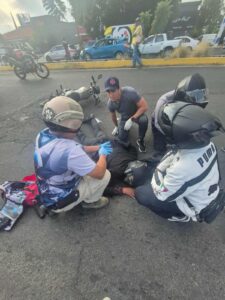 Morelia, Mich.- Jueves 20 de noviembre de 2025.- Un motociclista resultó lesionado tras ser impactado por un vehículo de características desconocidas sobre Calzada La Huerta, en la ciudad de Morelia, indicaron fuentes de rescate.