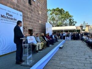 Señaló que el Plan Michoacán por la Paz será una estrategia permanente, distinta y con un enfoque integral que atiende las causas profundas de la inseguridad: generación de empleo, reconstrucción del tejido social, trabajo con jóvenes, fortalecimiento comunitario, desarrollo económico, agropecuario, social y ambiental y una estrategia de seguridad cada vez más asertiva para desmantelar organizaciones criminales.