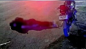 A su llegada los socorristas hallaron ya sin signos vitales a un muchacho que presentaba impactos de bala en el cráneo, mismo que terminó tirado junto a una motocicleta de color negro de la marca Itálica, con placas L6C43S.